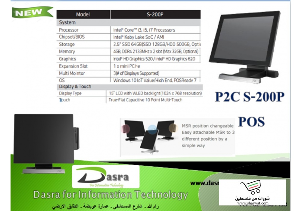 ملاحظة " متوفر شاشة عرض خلفية للزبائن "