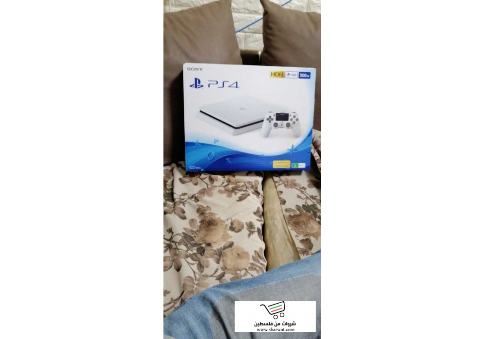بلاستيشن ٤ سوبر سلم لون ابيض ٥٠٠ جيجا مع ٢ يد اصلي و بلاضافه الى سيدي عدد ٢