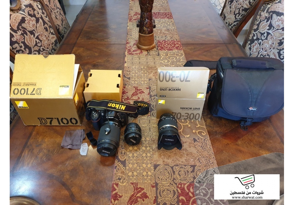 كاميرا NIKON 7100 مع ٣ عدسات وملحقات اخرى