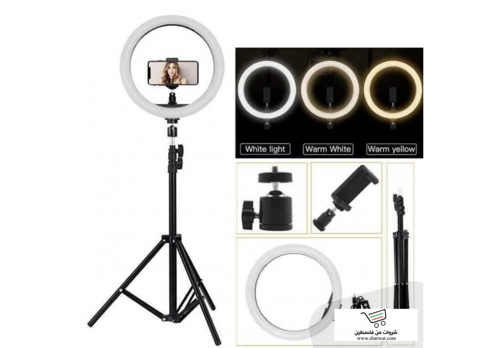 إلى كل محبين برنامج Tik Tok وتصوير الفيديوهات والصور نقدم لكم ستاند التصوير متغير الطول مع حلقة الإضاءة المذهلة التي تعطي ثلاثة ألوان مختلفة و11 مستوى للإضاءة للحصول على 33 خيار لتحديد اللون والإضاءة المناسبة