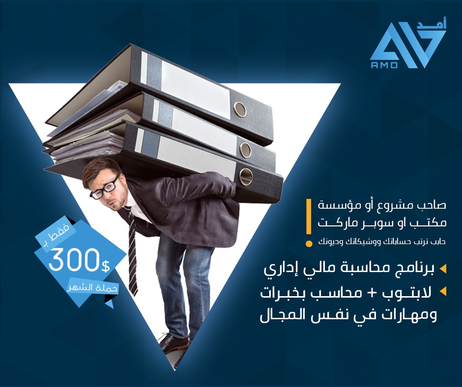 ✔️مع #أمد بتقدر تمتلك برنامج محاسبة مالي إداري بالإضافة إلى لابتوب، وكمان محاسب بخبرات ومهارات في نفس مجال شغلك