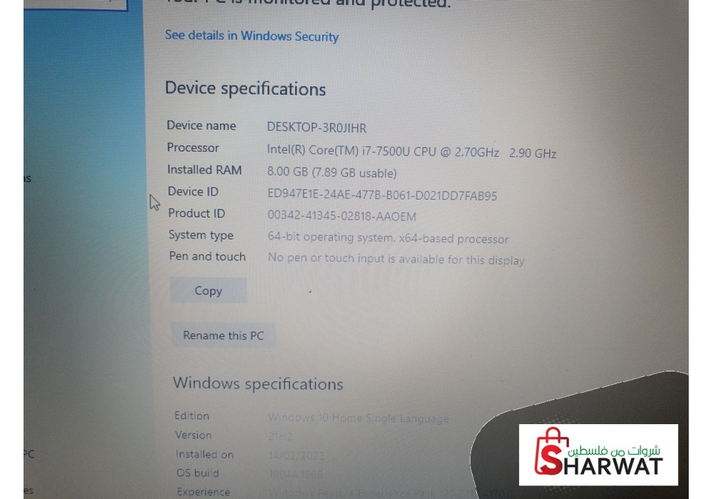 معالج : intel core i7 7500 جيل سابع بيوصل لحد 3400GHz