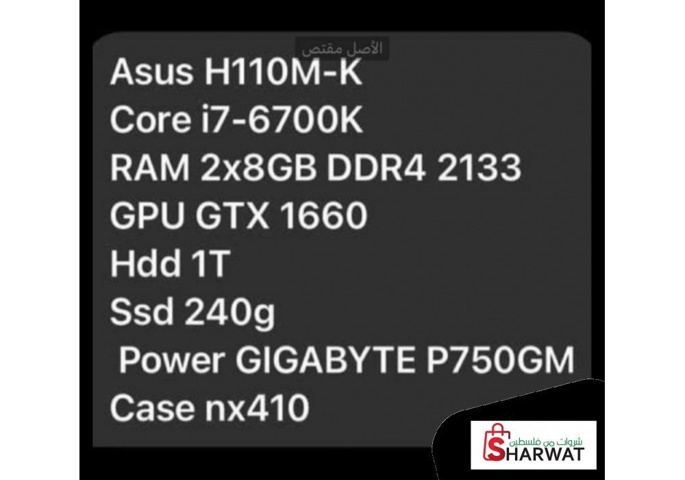 كمبيوتر جيمنج مستعمل اسبو فقط كرت شاشهgtx 1660 معالج core i7جيل 6700k b750 HHD1T