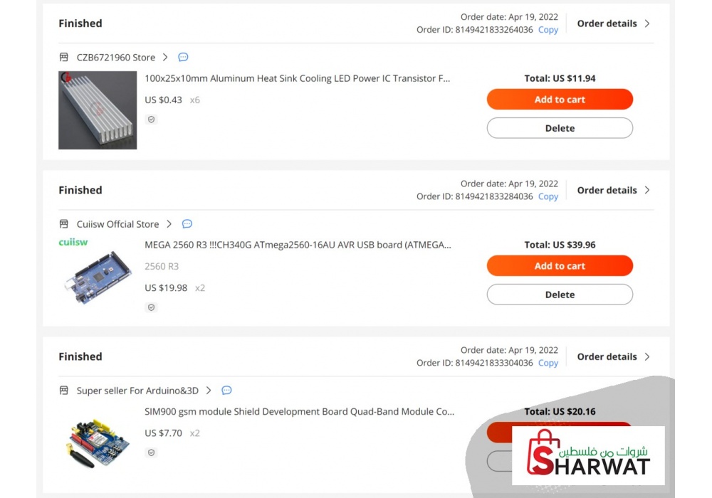 اشتريتهم قبل فترة من علي اكسبرس وقعدو تقريباً 3 اشهر ليوصلو ع اساس يكونو لمشروع تخرج جامعي لكن بالنهاية اتغيرت فكرة المشروع.