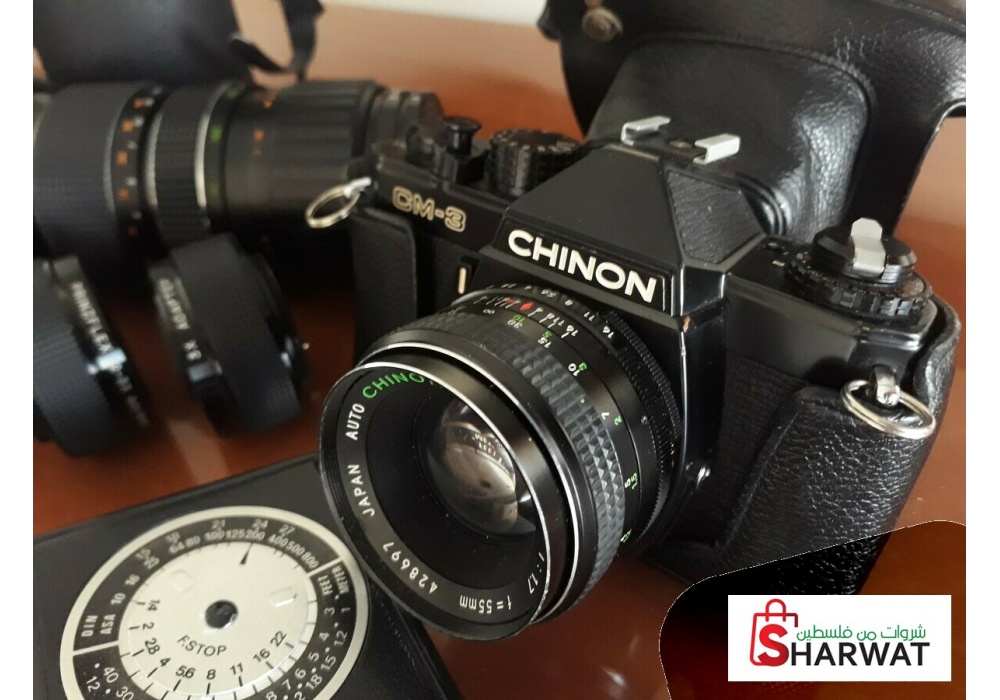 كاميرا CHINON فيلم قديمة غير مستخدمة، مع عدة عدسات مختلفة ولوازم اخرى لهواة التصوير للبيع / بيت لحم.