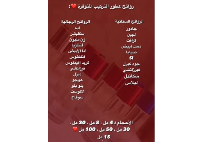 متوفر من افخم واجود عطور التركيب والمميزه بثباتها وفوحانها