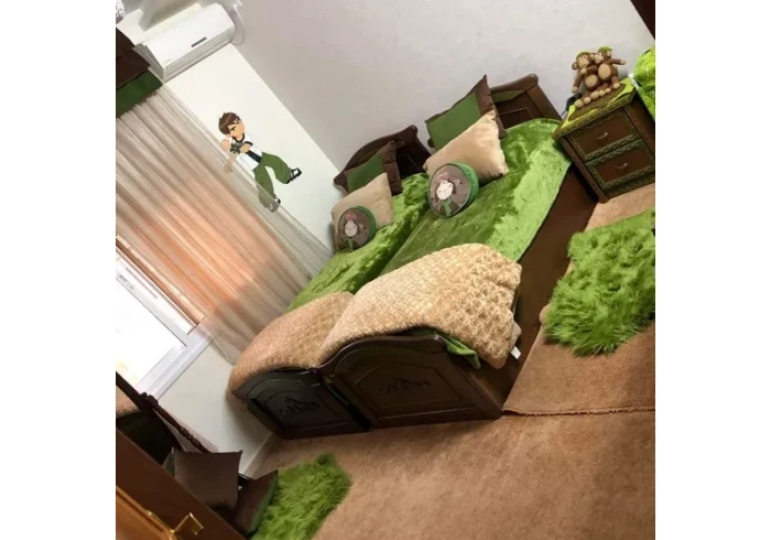 غرفة نوم أطفال تختين مفرد مع كومدينه صغيره مع مكتبه ورفوف للألعاب تفصيل خشب ساندويش تقيل