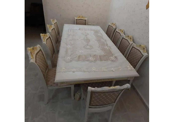 طاولة سفرة بحالة ممتازة لون ابوكسي 12 كرسي