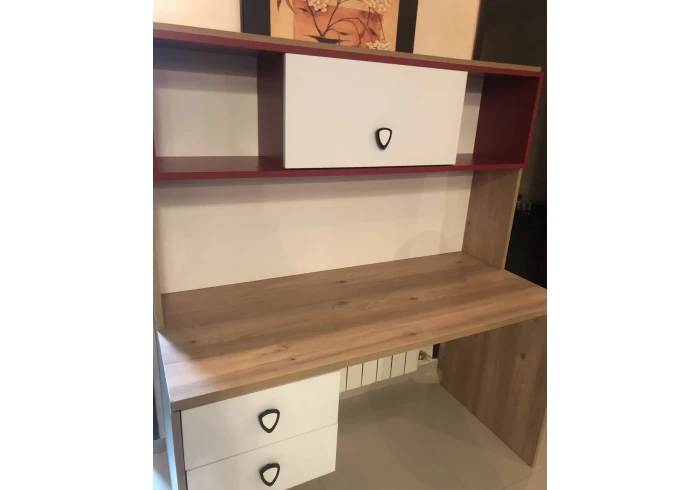 مكتبة خشبية باللون الاحمر والابيض مستعملة شبه جديدة