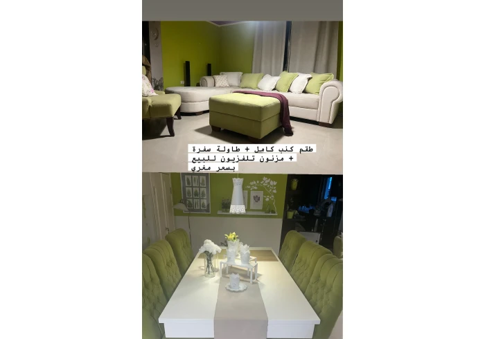 طقم عفش كامل للبيع مع طاولة و مزنون تلفزيون بسعر مغري