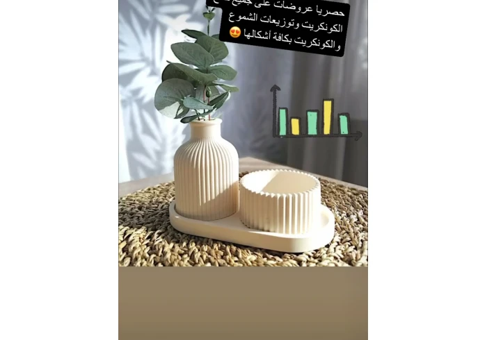 مزهريات ومباخر وتوزيعات من الكونكريت وشموع مصنوعه هاند ميد بكل حب