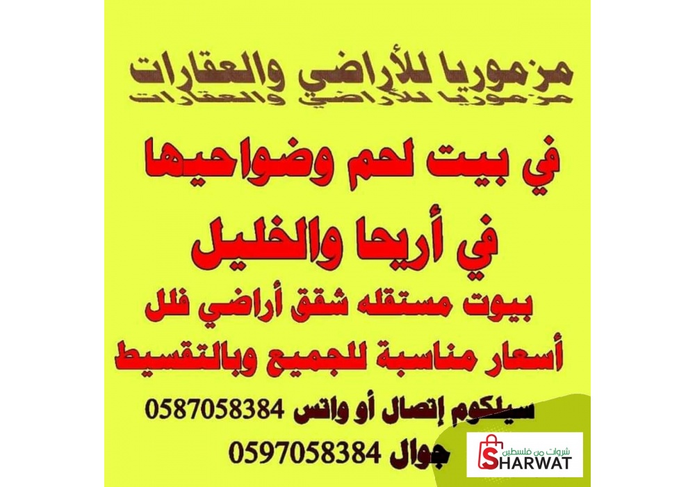 مزموريا للأراضي والعقارات الخيار الأفضل لكم اهلا وسهلا بالجميع الكثير من العروض الجديده بأسعار مناسبة و بالتقسيط بما يتناسب مع أصحاب الدخل المحدود