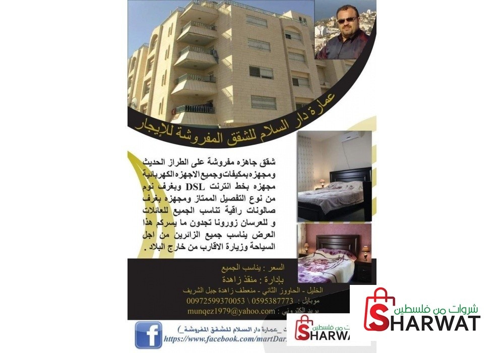 | عنوان الشقة | : الخليل - مدينة جبل الشريف مقابل قاعات وايت دريم |