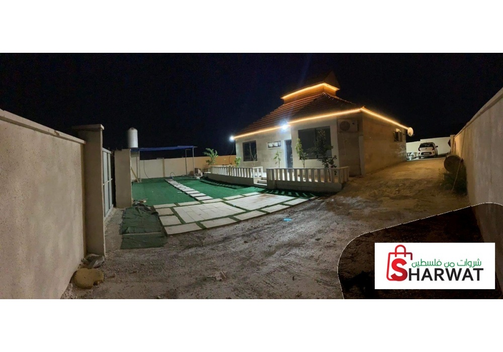 البيت بناء جديد وفي منطقة هادئة مكون من ٣ غرف وصالة مع مطبخ ، ارض كبيرة ويوجد مساحات وبركة بمساحة ١٠*٤*٢،انجيل ، مُكيفات بجميع الغرف والصالة ، حجر على جميع الواجهات ، شارع خاص من الشارع الرئيسي قريبة على الخدمات و وسط البلد ، اسوار على الارض ، بيت جميل وهادئ