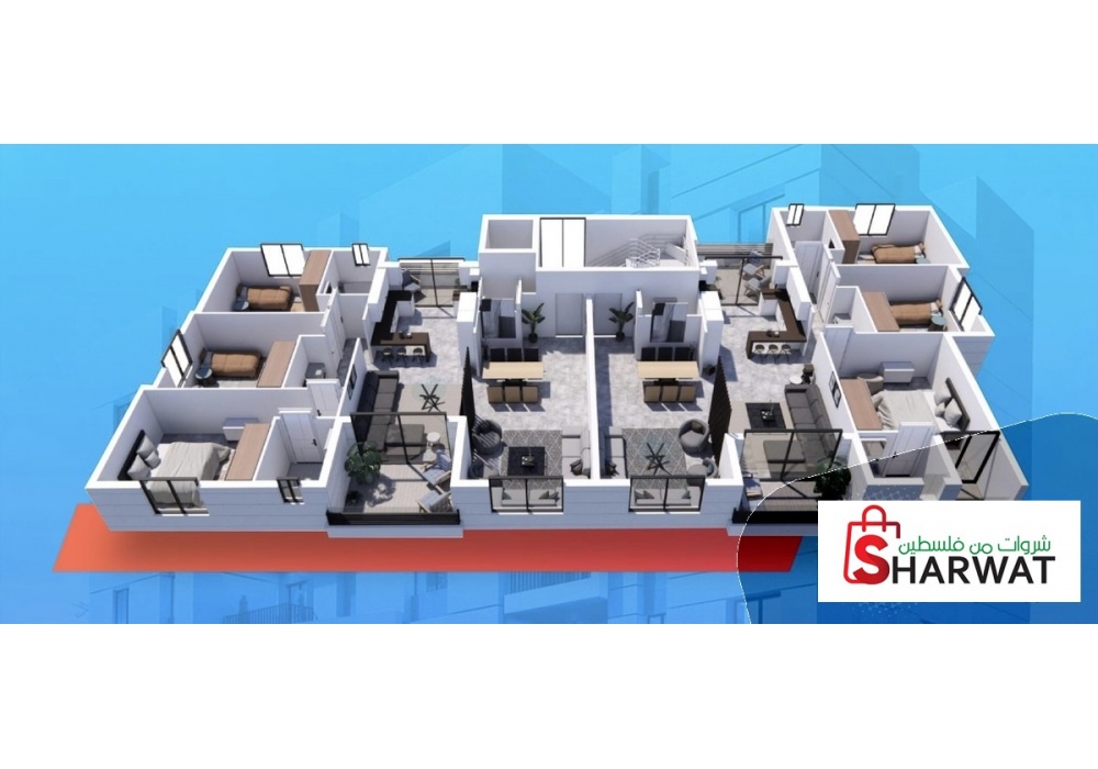 ويوجد شقة بمدخل خاص وترس امامي وشقق اكبر.