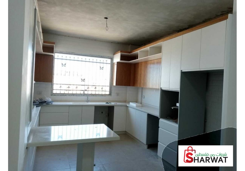 شقة مشطبة سوبر ديلوكس ، جميع التمديدات من ماء و كهرباء و سبوتات من أرقى الماركات العالمية والمطبخ من الخشب مطلي بمادة البوليلاك المقاوم للماء .