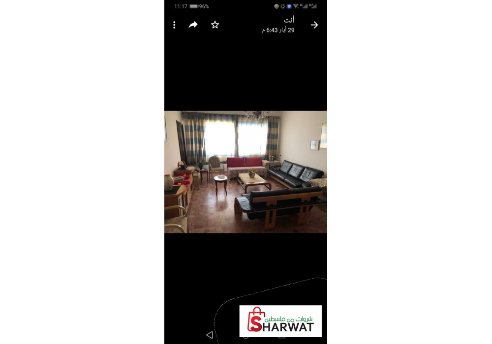 شقة مفروشة للايجار نابلس الجبل الشمالي طابق ارضي مطل صالة كبيرة مع سفرة مطبخ و ثلاث غرف