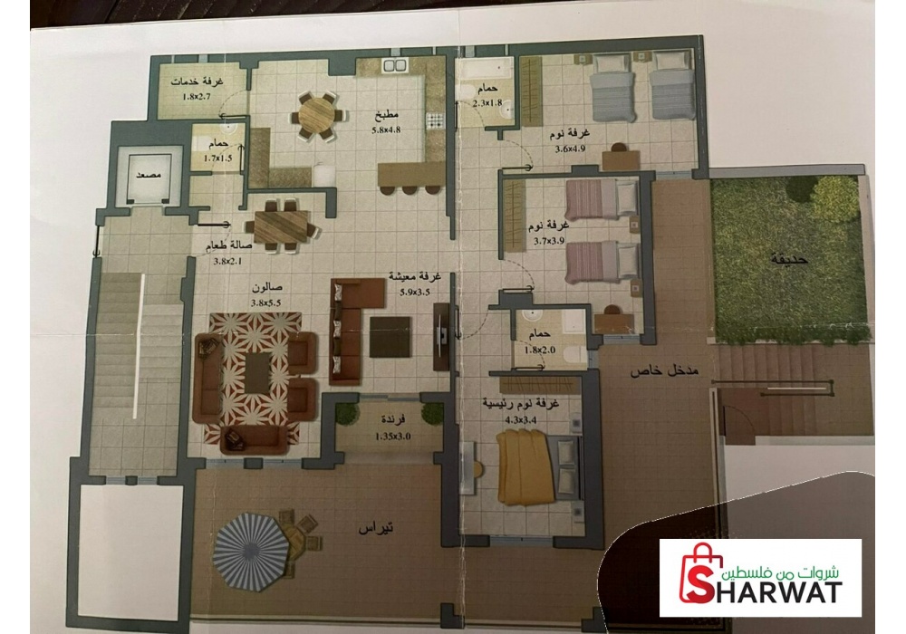 ✅مساحة 173 متر داخلي + ساحات خارجية 115 متر تابعه الها