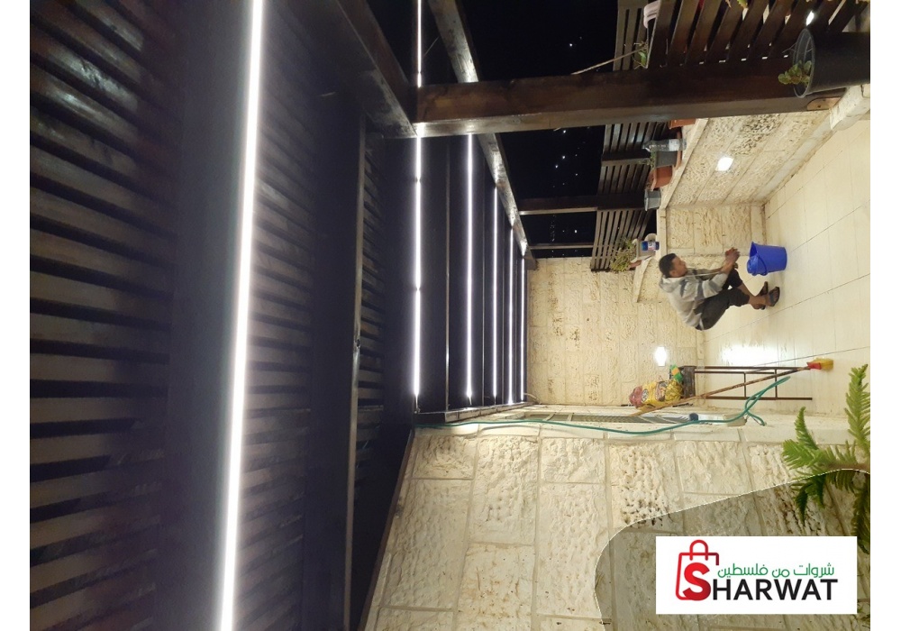 مساحة روف مسقوف ١٢٠ متر وترسات عدد ٣ تقدر ٩٠ متر بروجلات خشب