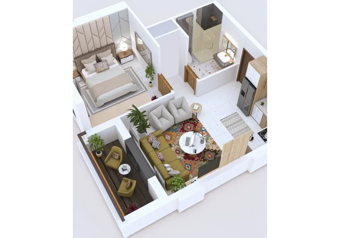 غرفة نوم، حمام، صالون، مطبخ، بلكون