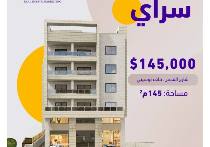 عمارة سراي بناية قيد الانشاء في منطقة حيوية قريبة من شارع القدس بالقرب من توستي