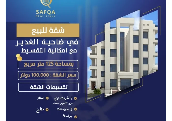 سعر الشقة 100,000$ ألف دولار ,,,, مع امكانية التقسيط