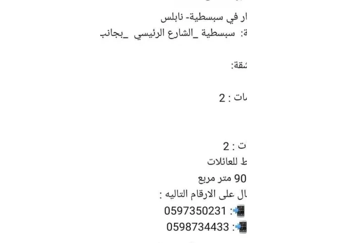 تأجير شقة في سبسطية-نابلس عقد ايجار سنوي