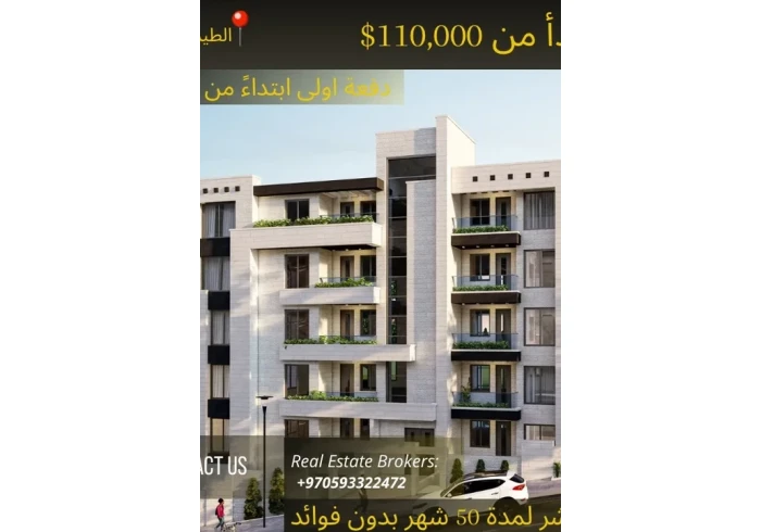 ضمن مشروع الدوحة، شقق قيد البناء للبيع في الطيرة وبأسعار تبدأ من 110,000$ وبتسهيلات مالية تصل الى 50 شهر