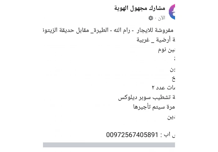 شقة مفروشة للايجار - رام الله - الطيرة_ مقابل حديقة الزيتونة