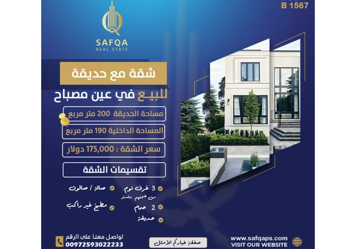 شقة طابقية مع حديقة قيد التشطيب للبيع في #عين_مصباح