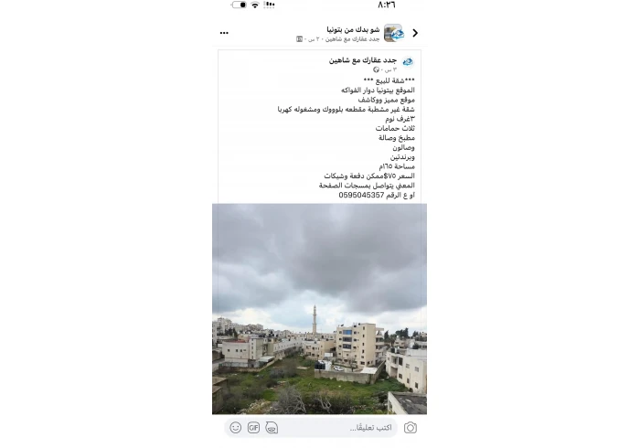 | عنوان الشقة | : رام الله والبيرة-بيتونيا |