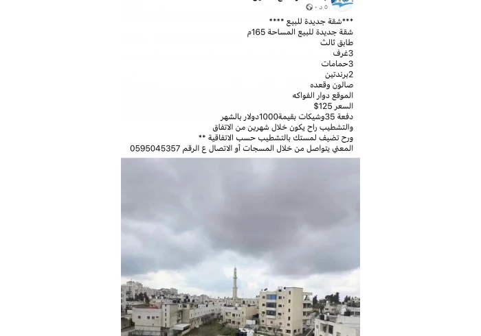| عنوان الشقة | : رام الله والبيرة-بيتونيا |