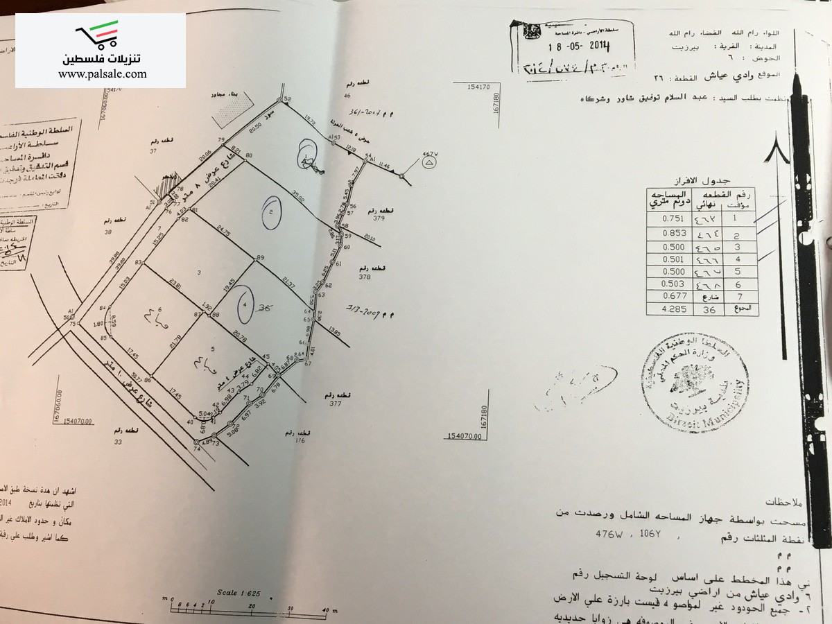 الارض طابو وتبعد عن دوار ابو جسار مركز المدينة 1500 متر وتقع في حوض 6 وادي عيلش