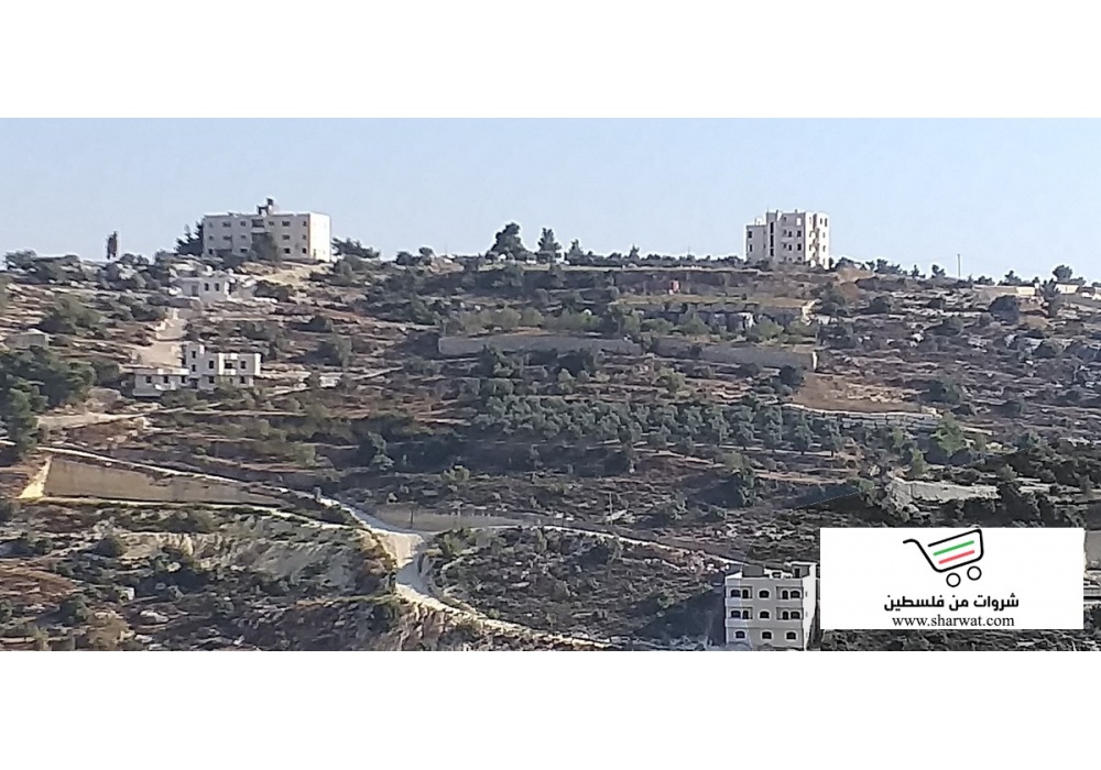 ارض من ٤ دنم صالحة للبناء جبلية مستوية ومشجرة
