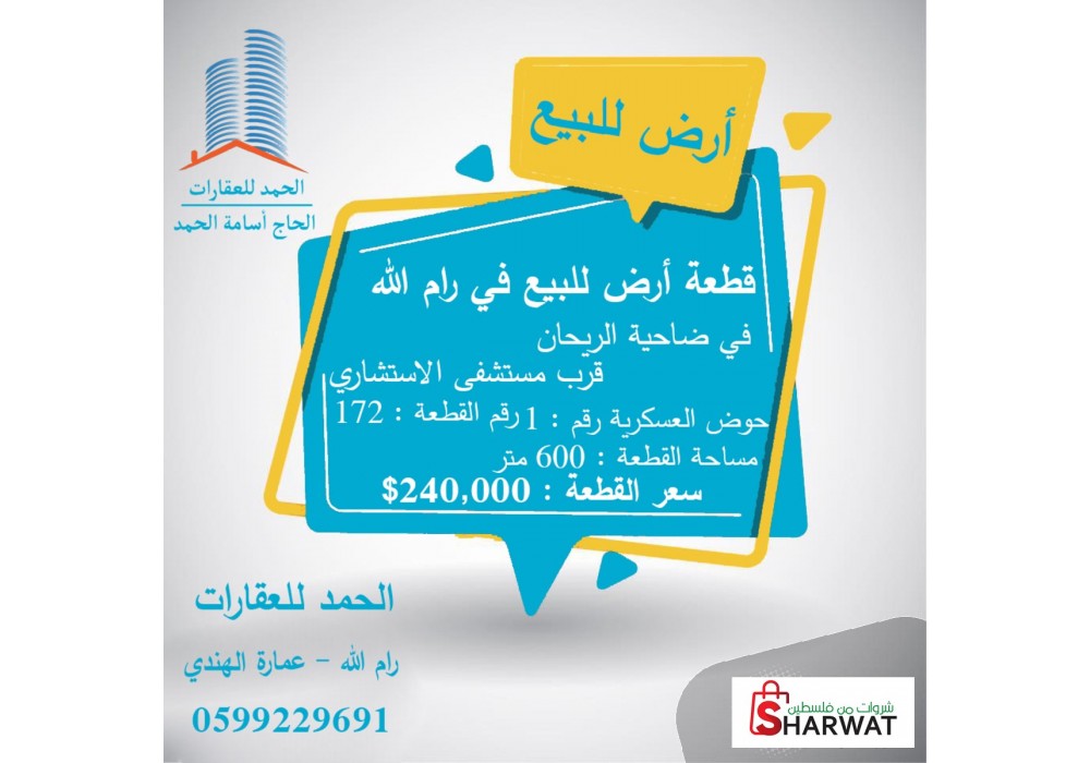 | عنوان الارض | : رام الله والبيرة - في ضاحية الريحان |