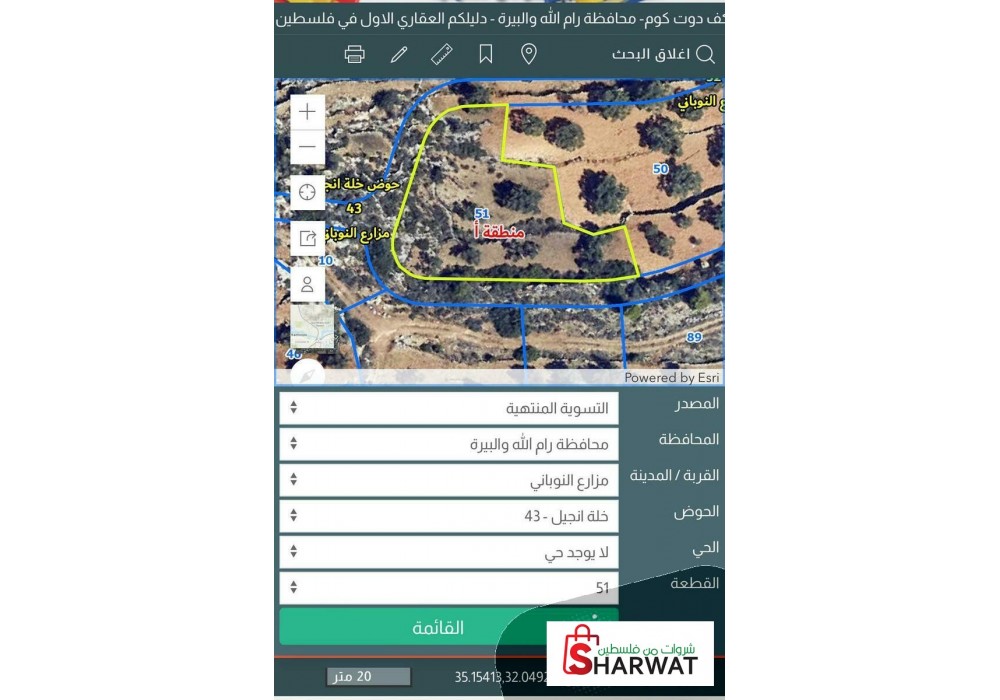 | عنوان الارض | : رام الله والبيرة - مزارع النوباني |