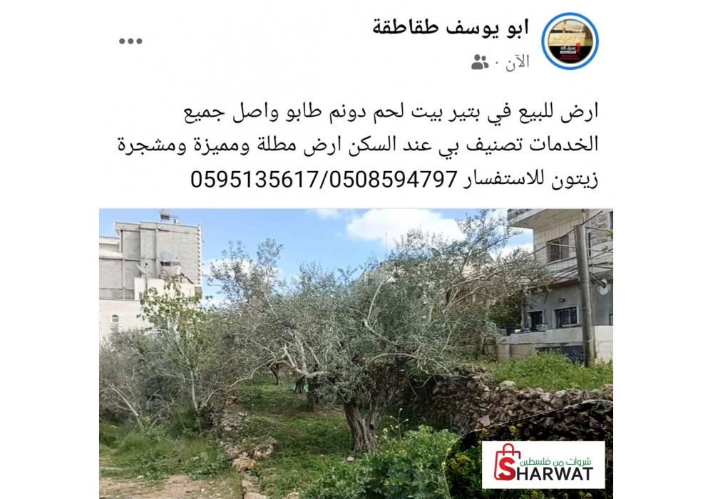ارض للبيع في بتير ارض مطلة تصنيف بي وطابو تصلح للسكن واصل جميع الخدمات