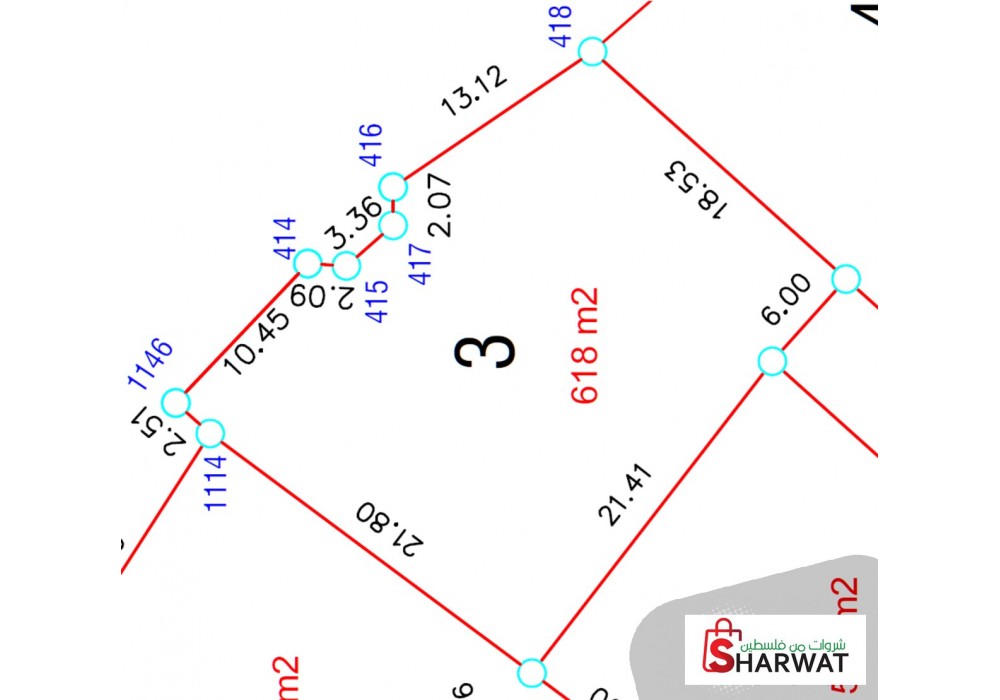 مساحة الارض 618 متر كوشان مستقل طابو سلطة (أ A) داخل حدود البلدية وصافي شوارع
