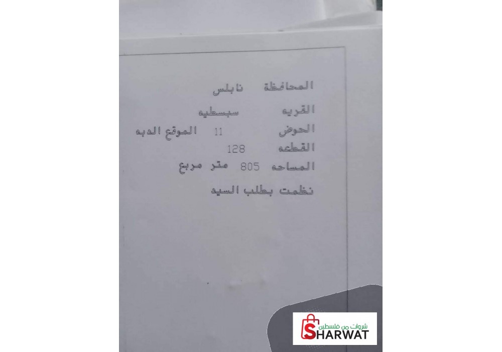 ارض ٨٠٥ متر في سبسطية على الشارع الواصل بين سبسطية
