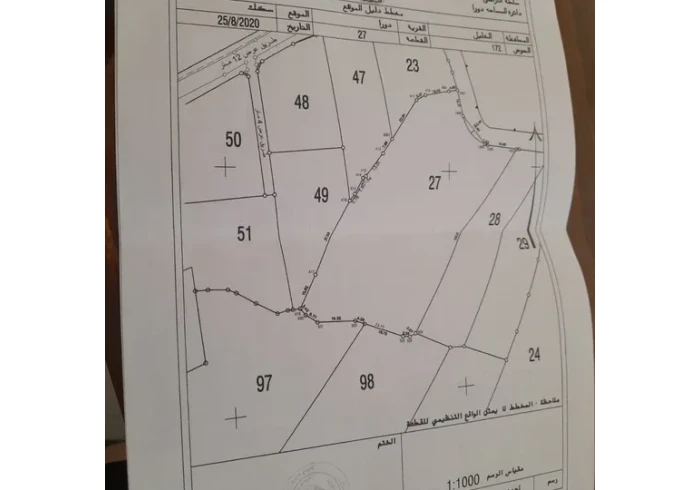 ارض مساحتها تقريباً 6 دونم رقم القطعه 27 ارض جميلة جداً مشجرة كلها بالزيتون واللوز ومسيجه وعليها بوابه وفيها بير جديد كبير كوشان طابو السعر 30 دينار على المتر وعلى الكاش فيها مجال شوي الارض تقع في واد قيس بعد مراح البقار بالقرب من مثلث المجد ودير العسل تبعد عن الزفته 200 متر طريقها سهله وهناك مشروع قائم للزفته من قبل المجلس المحلي واصل جميع الخدمات بها ارض سهله جداً ككف اليد تصلح للزراعه او للبناء