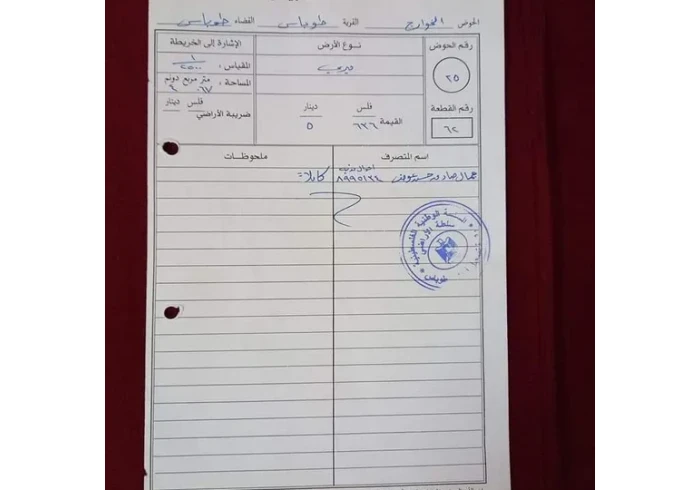 قطعة ارض مميزة في محافظة طوباس بمساحة