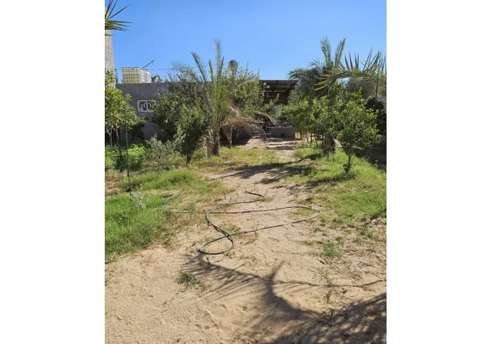 مقام عليها شقه مكونه من غرفة نوم 2 +صاله +مطبخ وحمام ومعرش علي باب الشقه ومزروعه زيتون + جميع أنواع الحمضيات + جميع أشجار اللوزيات + جوافه + أسكدنيه+ ورمان وعنب وجميع الأشجار مثمره و6نخلات وشجرتين تين