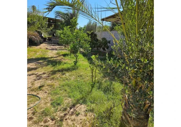 مقام عليها بنايه تتكون من غرفتين نوم وصاله ومطبخ وحمام ومعرش علي باب الشقه بعرض الشقه ومجهزه لتكون شاليه مميز مزروعه بجميع الأشجار المثمره والنخيل وعنب وأشجار الزيتون مزوده بفرن للماندي وشوايه وبرميل مندي وكهرباء وماءوخط واي فاي ودش