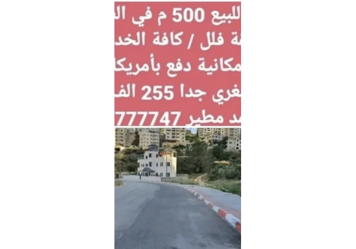 ارض للبيع في مدينة الطيرة 500م2 لبناء عمارة عائلية او اسكان كامل الخدمات متوفرة ، طابو سلطة مستقل