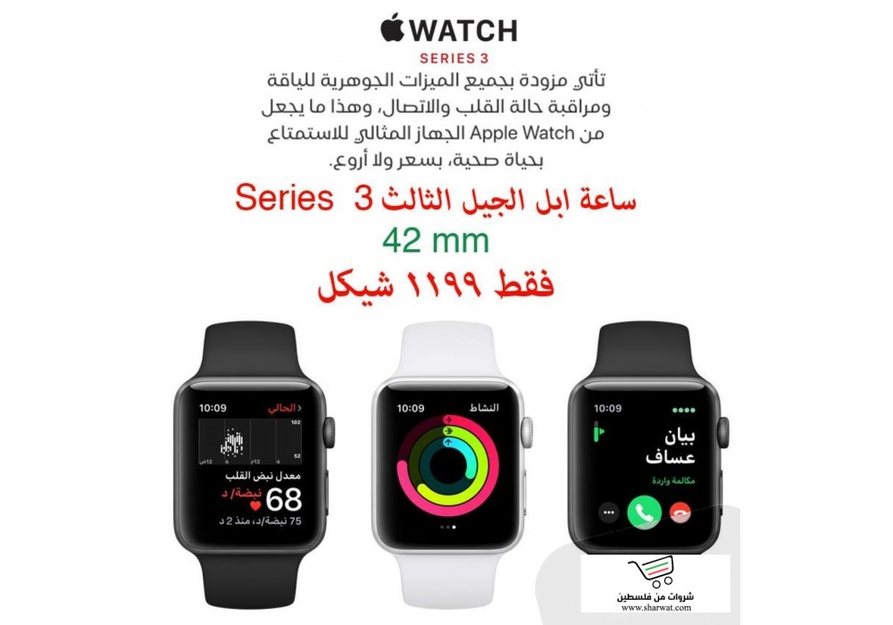 ساعة ابل الجيل الثالث ٤٢ مم لون اسود فقط ١١٩٩ شيكل