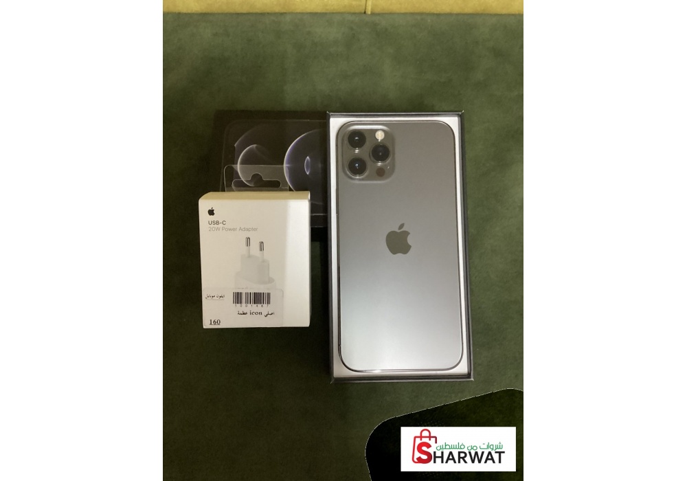 ايفون ١٢ برو ماكس + الكرتونة + الشاحن الاصلي + كفرين