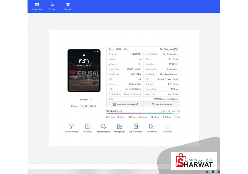 Ibad 9th 256g ايباد الجيل التاس للبيع كنت بستخدمو لتعديل الصور على Lightroom