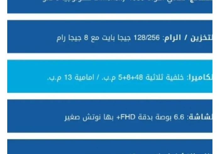 | سعة التخزين | : 128 جيجا |