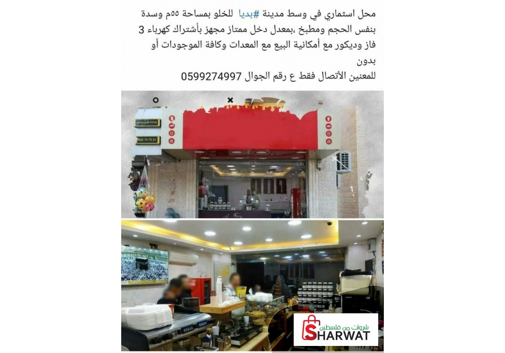 المطلوب 75 الف شيكل بدل ديكور ومعدات وكاونترات والكثير ويتم تسجيل كافة الاغراض بعقد الاجار لضمان حق المستأجر بكافة الاغراض كالقارمة والابواب واشتراك 3فاز وغيره الكثير