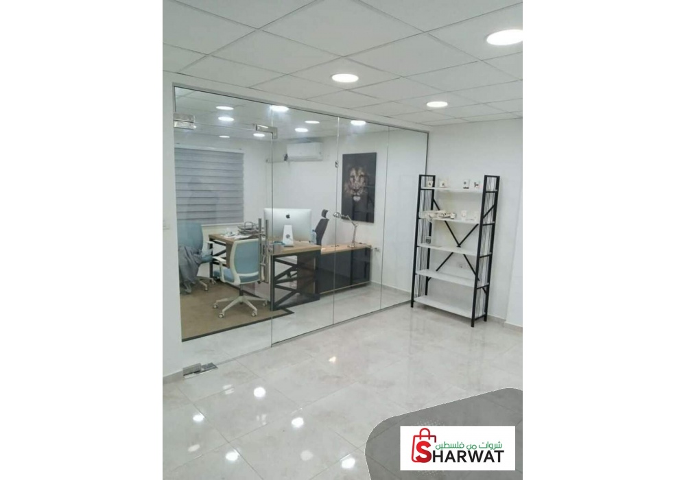 مكتب للايجار بيتونيا الشارع الرئيسي مساحة 80م تشطيب جديد سوبر ديلوكس طابق اول عمارة جديدة .